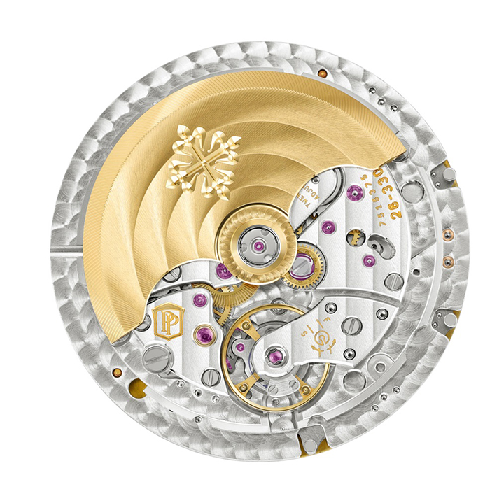 Diameter: 31 mm. Height: 4.82 mm. Number of parts: 290. Jewels: 29. Power reserve: Min. 35 hours – max. 45 hours. Winding rotor: 21K gold central rotor. Balance: Gyromax®. Vibrations/hour: 28 800 (4 Hz). Balance spring: Spiromax®. Hallmark: Patek Philippe Seal.