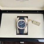 Paying tribute to the 20th anniversary of the Aquanaut launched in 1997, the men’s model is now available in the new 42.2-millimeter “Jumbo” format. It features an embossed dial subtly gradated from black to night blue. Decidedly masculine looks for this incarnation of casually elegant chic framed by a delicately satin-finished bezel. The white-gold case is water resistant to 120 m and protects the self-winding caliber 26‑330 S C movement.