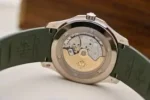 White gold “JUMBO” model in new khaki greenThe Aquanaut white gold men’s watch “Jumbo” (case diameter 42.2 mm) is the representative of modern sports fashion, and the new khaki green design shows a youthful and dynamic style. The bold color palette represents the spirit of exploration that longs for the distance, and the rounded octagonal case and bezel combine polish with satin decoration.