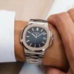 Water-resistant to 120 m and with a slightly enlarged diameter to 41 mm, the watch reflects its affinity with the original Nautilus of 1976 with a two-part case. It also features several subtle technical refinements and patented innovations: a secured fold-over clasp, a new lockable adjustment system, and a new pull-out piece lever system that replaces the split stem.