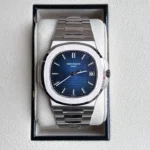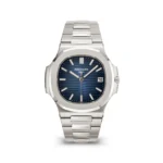 As the reinterpretation of a design icon, the Ref. 5811/1G-001 Nautilus features a case and bracelet in white gold as well as a blue sunburst dial with a black gradation to the periphery.