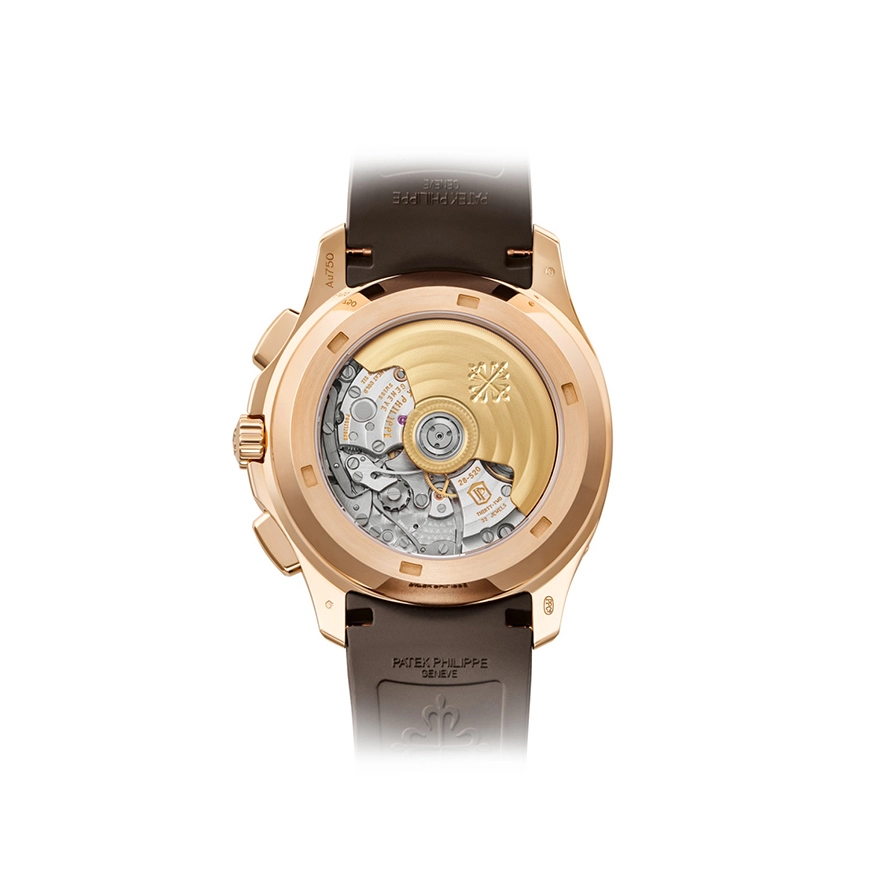 Chronograph with 60-minute counter. Date in an aperture. Diameter: 30 mm. Height: 6.63 mm. Number of parts: 308. Bridges: 14. Jewels: 32. Power reserve: min. 45 hours – max. 55 hours. Winding rotor: 21K gold central rotor. Balance: Gyromax®. Vibrations/hour: 28 800 (4 Hz). Balance spring: Spiromax®. Hallmark: Patek Philippe Seal.