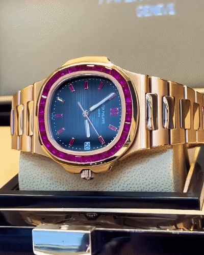 This certified authentic Brand New Patek Philippe Nautilus Watch, with the Model Number: 5723/112R-001, has a Rose Gold 40 mm Round Case with Screw Down Crown and a Gem Set. This Men’s Patek Philippe Nautilus has an attractive Dial with Gems Dial Markers.
