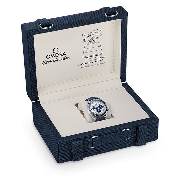 This 50th anniversary timepiece pays tribute to the “Silver Snoopy Award” that OMEGA received from NASA astronauts in 1970,