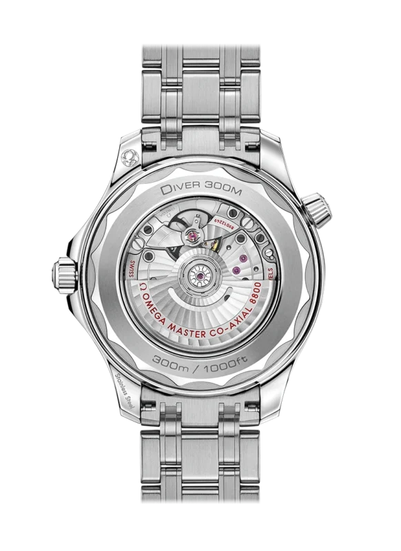 The stainless steel 41.5 mm case is presented on a stainless steel bracelet. This certified chronometer is powered by the OMEGA Master Co-Axial calibre 8500 which is resistant to magnetic fields greater than 15,000 gauss and can be seen through the transparent caseback.