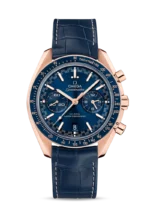 This 43 mm model is crafted in OMEGA’s exclusive Bronze Gold, with an oxidised bronze dial featuring a special patina and opaline finish. Along with a polished brown ceramic bezel ring with its tachymeter scale in “vintage” enamel, the leaf-shaped hands and Arabic numerals also feature an 18K Bronze Gold PVD coating. A unique “spiral” track pattern runs beneath the numbers.