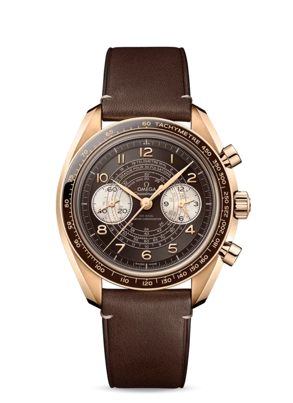 Giving this model its nickname are its brushed blackened Moonwatch-style hands and blackened applied indexes – all of which are coated with black Super-LumiNova. The familiar sub-dials at 3 and 9 o’clock are also matt black and the black ceramic bezel has a black lacquered tachymeter scale. At its heart is the OMEGA Co-Axial calibre 9300.