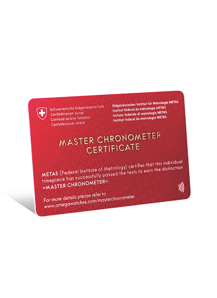 The watch is presented on a stainless steel bracelet and is driven by the OMEGA Master Chronometer Calibre 8800, which can be seen through the sapphire-crystal on the wave-edged caseback.