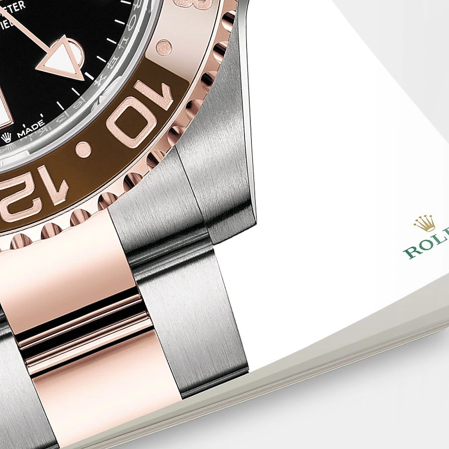 This model features a black dial and a two-colour Cerachrom bezel insert in brown and black ceramic. Designed to show the time in two different time zones simultaneously during intercontinental flights, the GMT-Master II has come to be recognized for its robustness and versatile appearance.