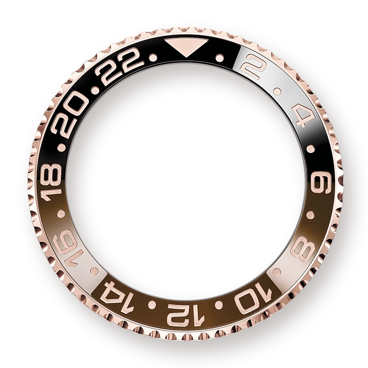 Bidirectional rotatable 24-hour graduated bezel. Two-colour brown and black Cerachrom insert in ceramic, moulded numerals and graduations