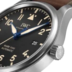 Titanium case, Automatic, self-winding, Diameter 40.0 mm, Black dial with luminescence, Brown calfskin strap, Strap width 20.0 mm.