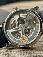 After overhauling and reassembling the movement, the dial and the hands are mounted onto the movement. We then carefully refit the mechanism into the refurbished case. Finally, our watchmaker performs any necessary adjustments before securely fastening the case back and hermetically sealing the case against the entry of dust particles or humidity.