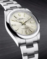 The Oyster bracelet is a perfect alchemy of form and function, aesthetics and technology. First introduced in the late 1930s, this particularly robust and comfortable metal bracelet with its broad, flat three-piece links remains the most universal bracelet in the Oyster collection. For the Oyster Perpetual models the Oyster bracelet is fitted with an Oysterclasp.