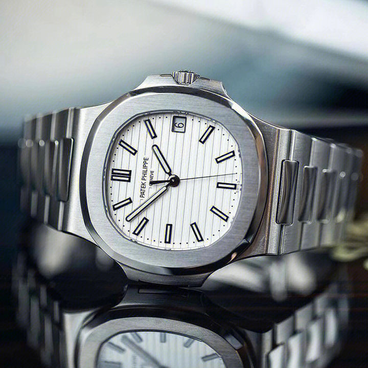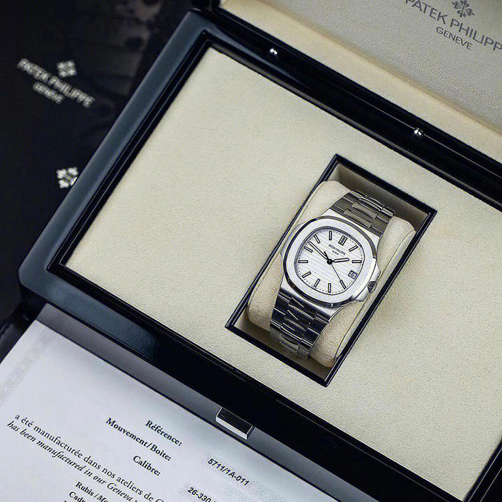 Patek Philippe Nautilus Silvery White Dial Stainless Steel Mens Watch 5711-1A-011.