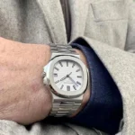 Patek Philippe Nautilus Silvery White Dial Stainless Steel Mens Watch 5711-1A-011.