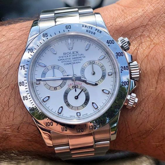 With its tachymetric scale, its three counters and its pushers, the Cosmograph Daytona was designed to be the ultimate timing tool for endurance racing drivers.