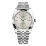 THIS OYSTER PERPETUAL DATEJUST 41 IN OYSTERSTEEL FEATURES A SILVER DIAL AND A JUBILEE BRACELET.