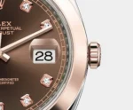 THIS OYSTER PERPETUAL DATEJUST 41 IN OYSTERSTEEL AND EVEROSE GOLD FEATURES A CHOCOLATE, DIAMOND-SET DIAL AND A JUBILEE BRACELET.