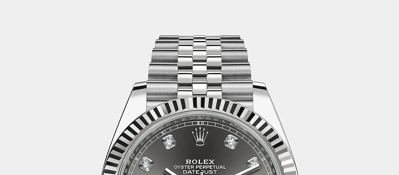 THIS OYSTER PERPETUAL DATEJUST 41 IN OYSTERSTEEL AND WHITE GOLD FEATURES A SLATE, DIAMOND-SET DIAL AND A JUBILEE BRACELET.