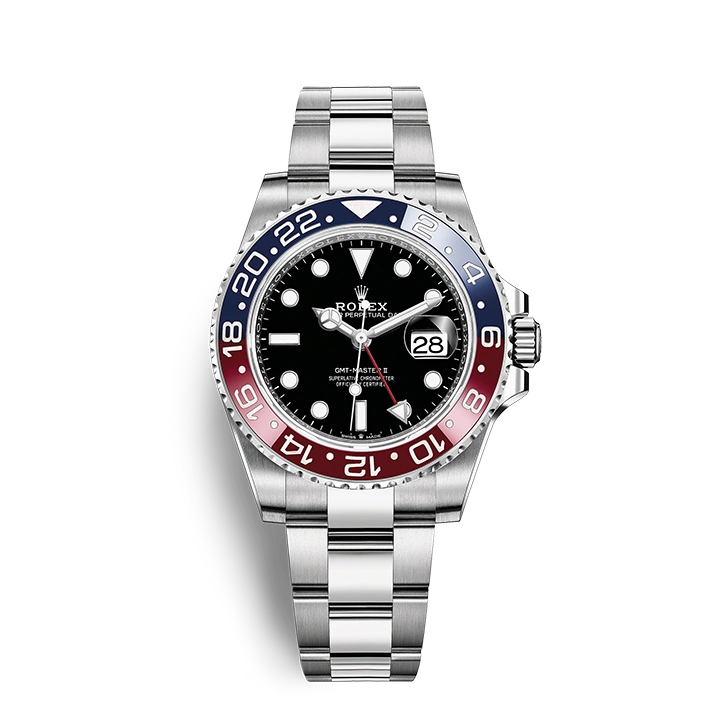 The emblematic two-colour bezel makes the GMT-Master II instantly recognizable.