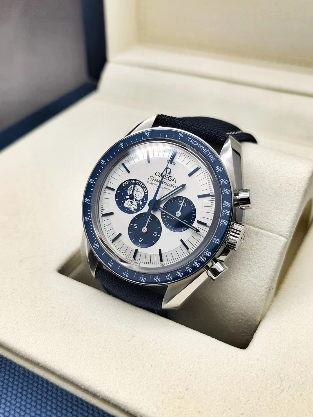 This 50th anniversary timepiece pays tribute to the “Silver Snoopy Award” that OMEGA received from NASA astronauts in 1970,