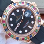 YACHT MASTER 1 GOLDEN DIAMOND BEZEL BLACK DIAL RUBBER STRAP 40MM 116695SATS