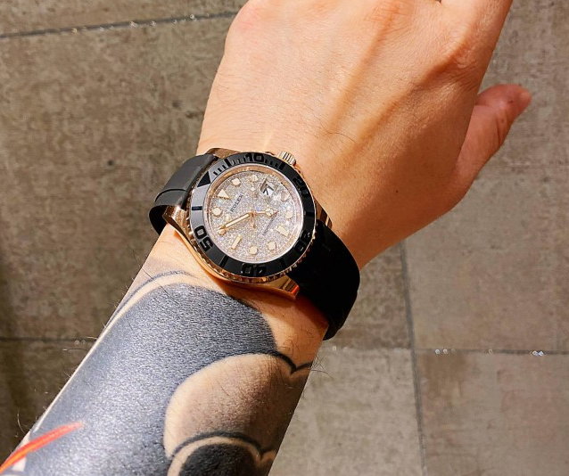 YACHT MASTER 1 GOLDEN DIAMOND DIAL RUBBER STRAP 40MM m126655-0005